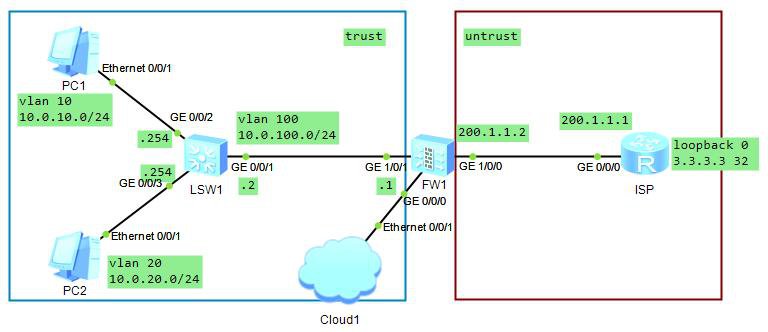 [ISP-GigabitEthernet0/0/1]ip add 100.1.1.1 24