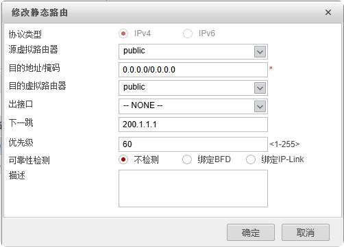 [USG6000V1]ip route-static 0.0.0.0 0 200.1.1.2